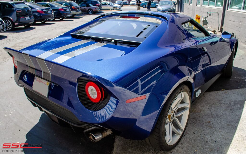SS Customs just installed an XPEL clear bra paint protection film on the New 2020 Stratos. A modern version of arguably one of the most successful rally cars of the 1970s—the Lancia Stratos—SSC wrapped the full front end of the vehicle, in addition to custom areas including the doors, rockers, and quarter panels.